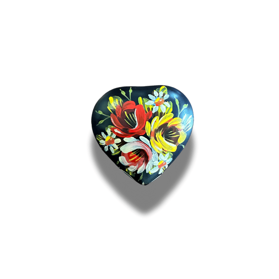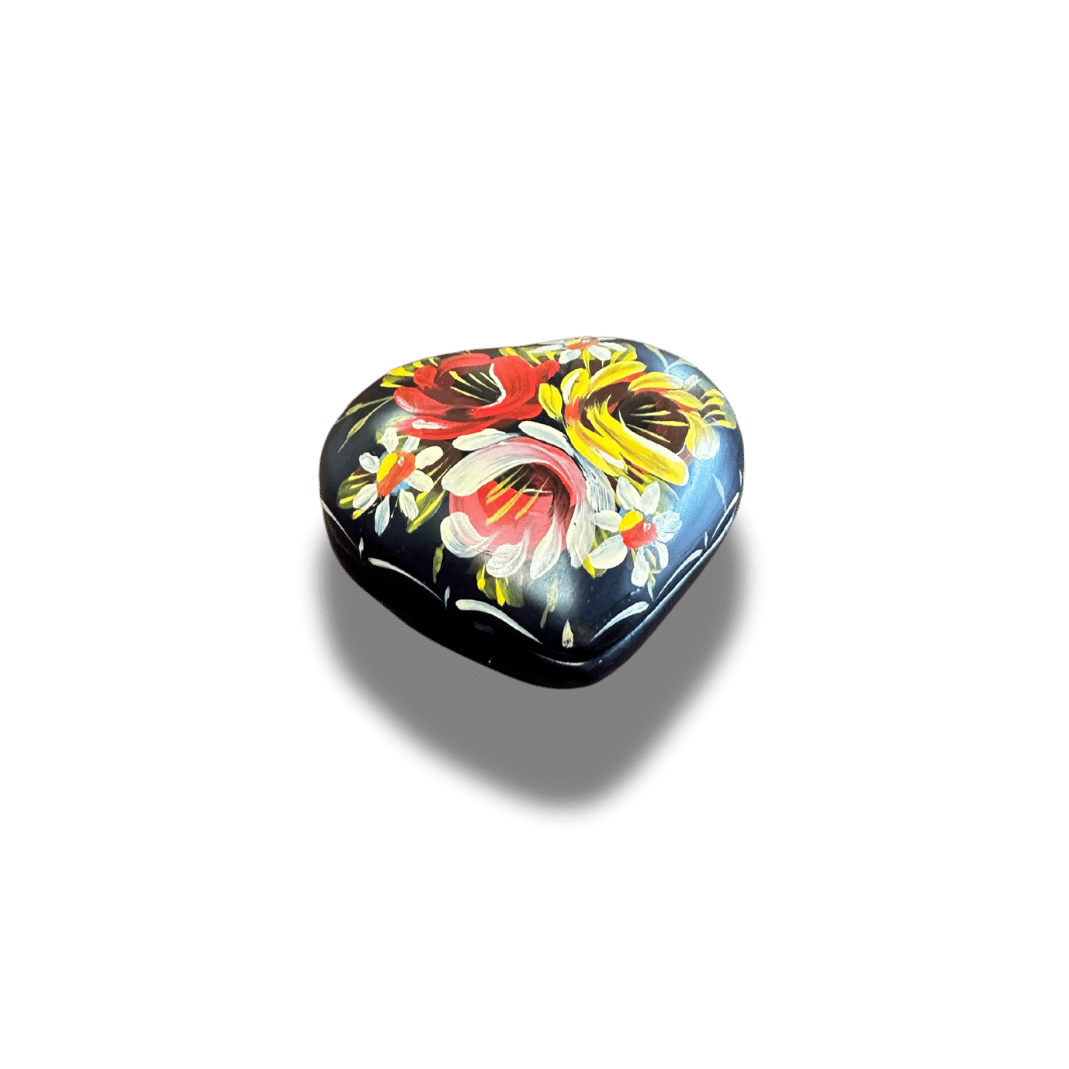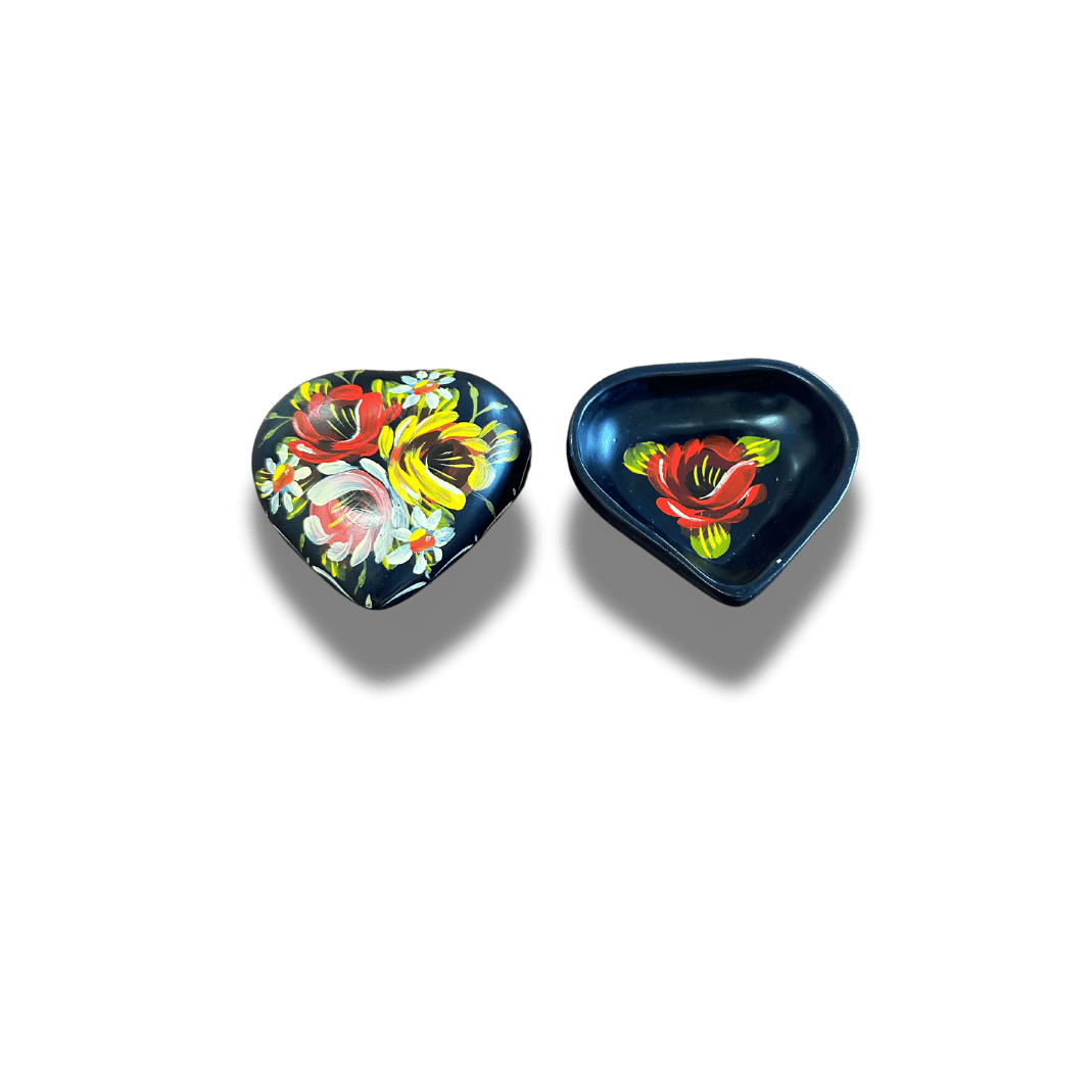 Decorative Heart Trinket Box - Hand Painted Rose & Castle Design - Black