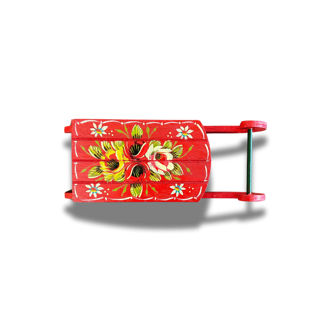 Decorative Xmas Sleigh - Hand Painted Rose & Castle Design -